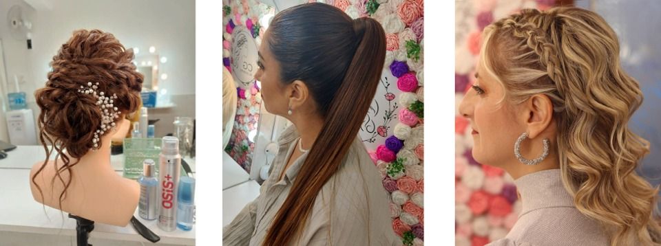 • Diferentes tipos de batidos, batido con pelo lacio, ondas y con falsas espigas • Semirecogido estilo boho con torzadas. • Correcta fijacion del pelo.